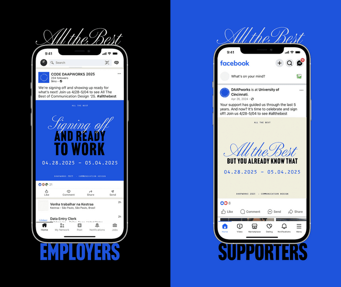 All the Best is a proposed brand identity system for the 2025 Communication Design Daapworks showcase. More than a signature, All the Best is a celebration of all our best work. It represents our collective dedication, our exceptional achievements, and a call to strive for greatness in all our future endeavors. We each have our own preferred signature, but this time is also about celebrating us as a collective: all that has made this experience meaningful, and with that, all our best work.