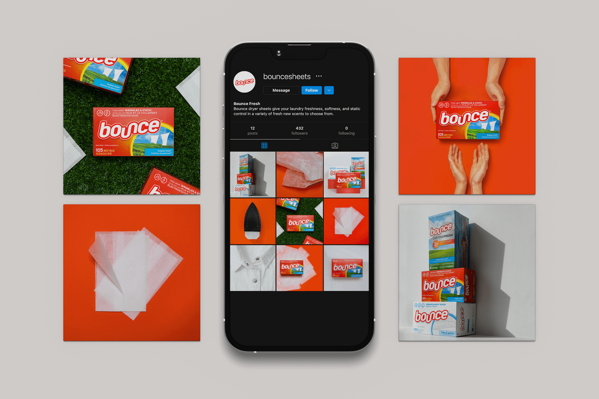 While working at Procter & Gamble, I produced a campaign that brings to life the vibrancy and modernity of Bounce dryer sheets while filling the gap in dryer sheet visualization that exists today. The produced content served as both inspiration and relevant assets for Bounce as a whole.
